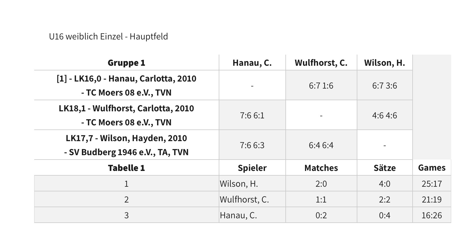 U 16w ; U 16m1. Emilia Sophia Schwarz1. Tamo Janssen
