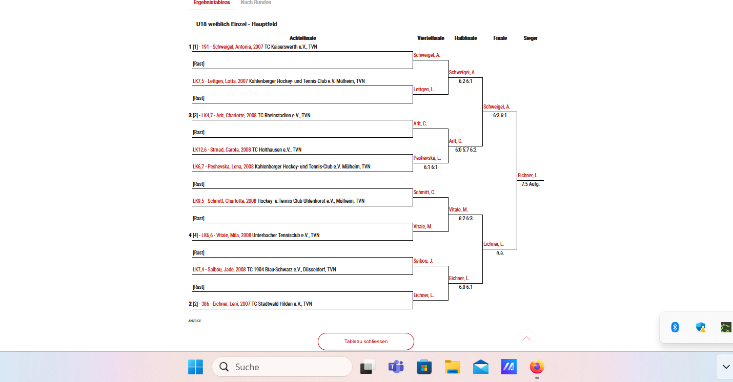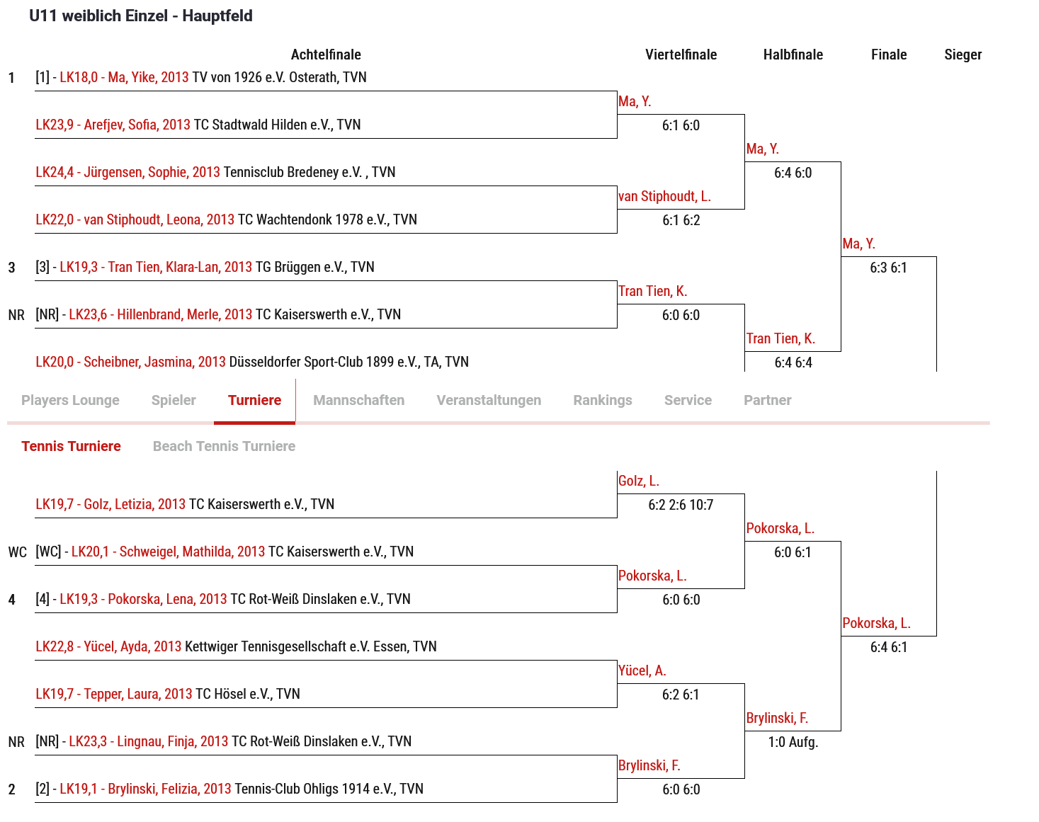 U 11w ; U11m | 1. Lisanne Maß | 1. Jamie Beyer |