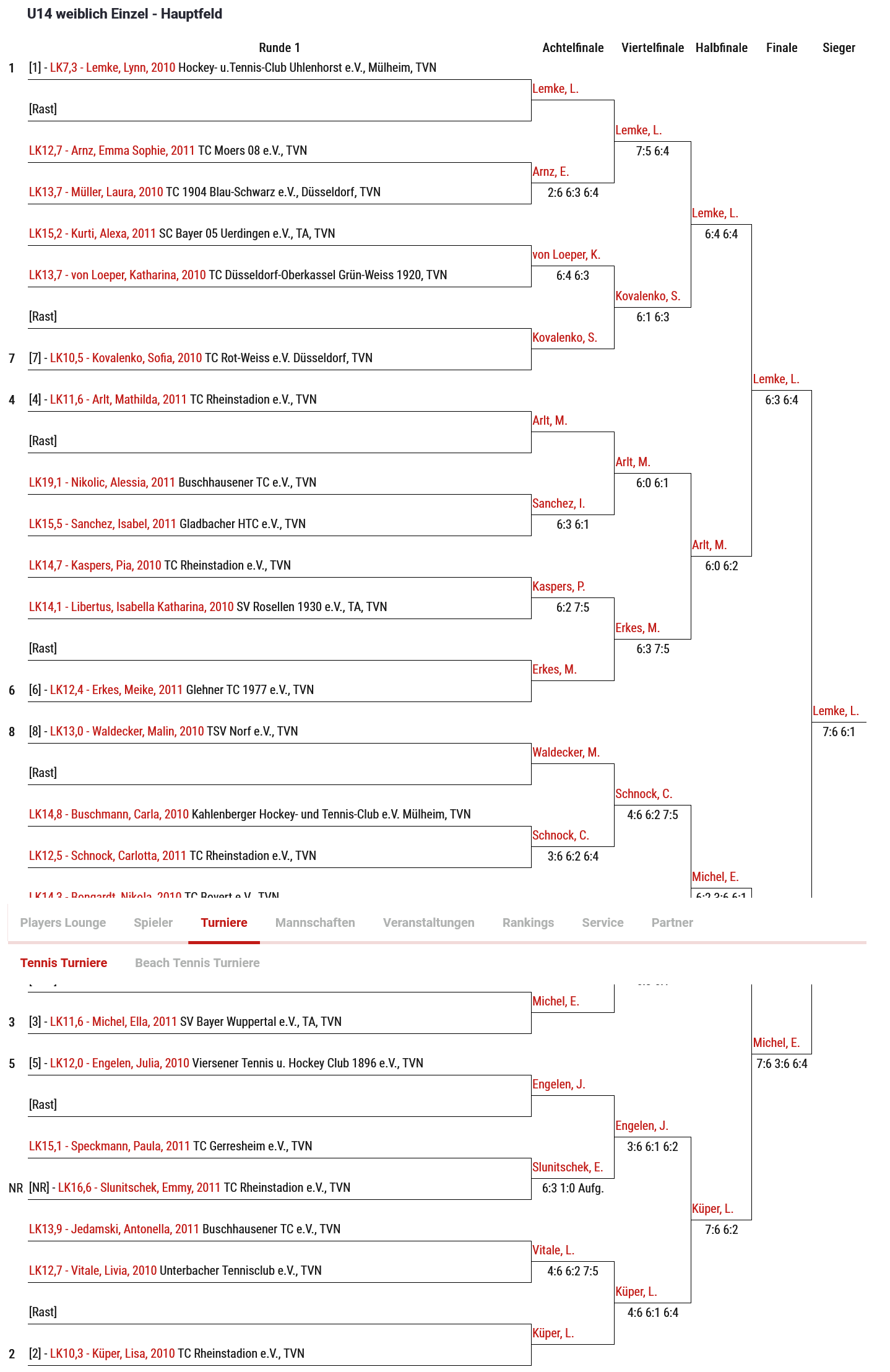 U 14w ; U 14m | 1. Lynn Lemke | 1. Jou Gnjidic |