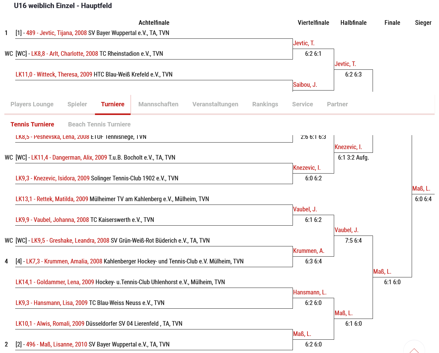 U 16w ; U 16m | 1. Lisanne Maß | 1. Jordan Mihajloski |