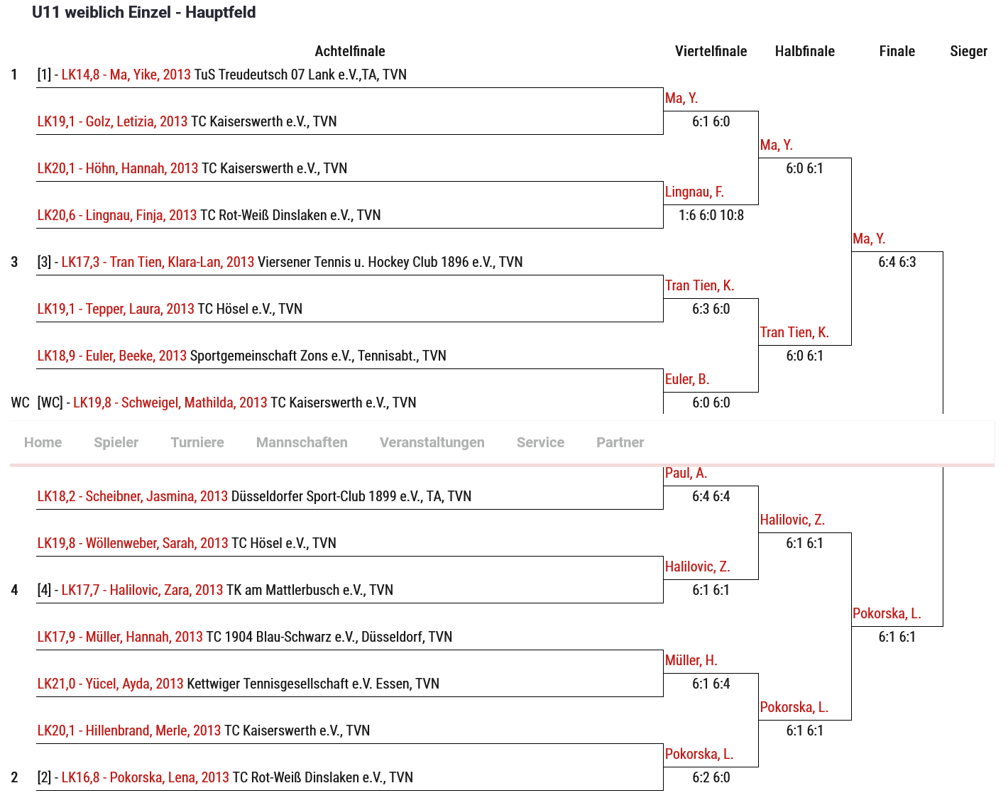 U 11w ; U 11m | 1. Yike Ma | 1. Janne Kruth |