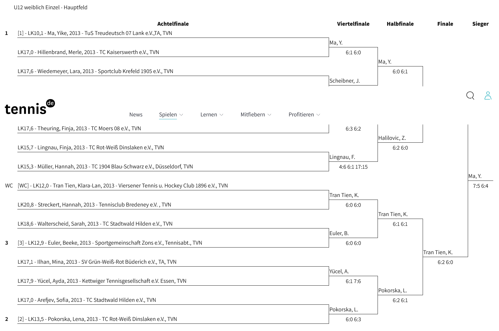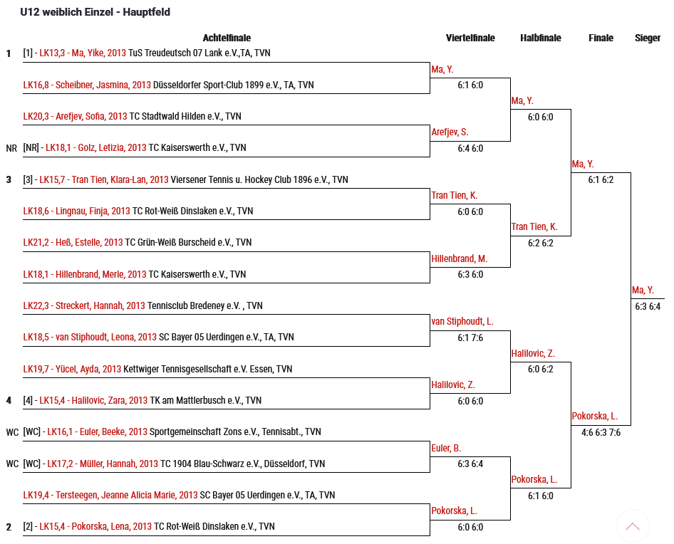 U 12w ; U 12m | 1. Yike Ma | 1. Janne Kruth |