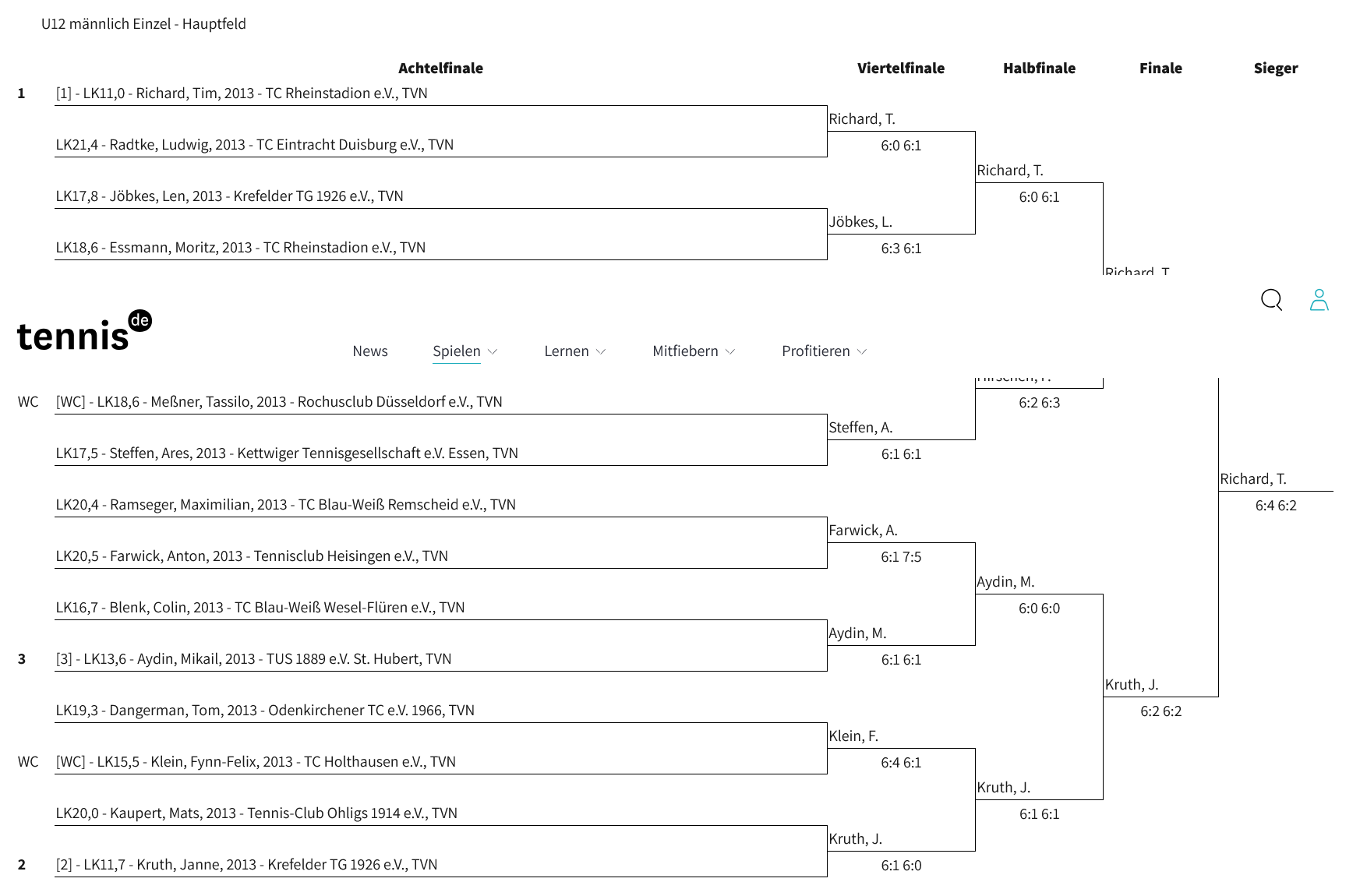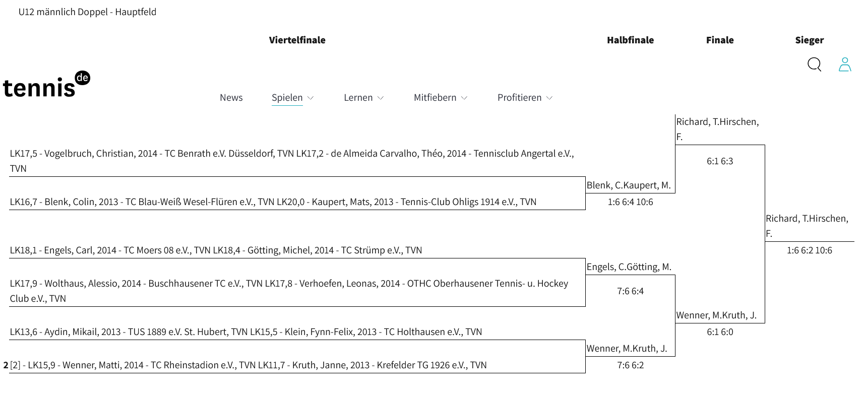 U 12m Doppel | 1. Friedrich Hirschen, Tim Richard | |