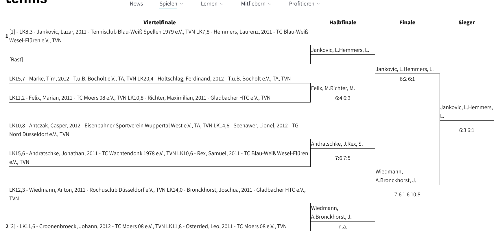 U 14m Doppel | 1. Laurenz Hemmers, Lazar Jankovic | |